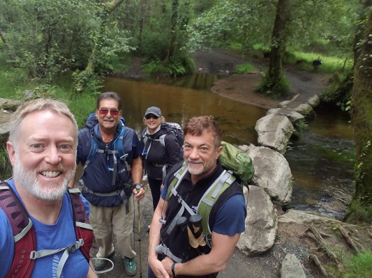 Rick, Roddy, Donna and Jeff at river crossing outside Melide